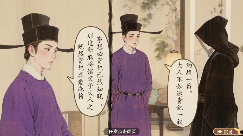 2、正式开局时,玩家将接手皇帝暗中安排的麻将馆,表面上是馆长,实则是天子倚重的心腹重臣。