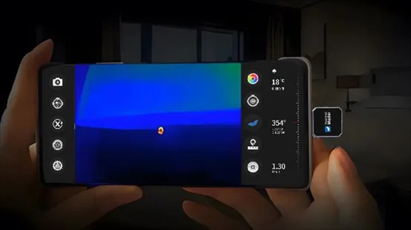 4、针孔摄像头检测:针孔摄像头在工作时会产生热量,天眼手机热成像能够快速定位针孔摄像头的位置。肉眼无法“看到”的针孔摄像头,在热成像的面前,清晰可见。