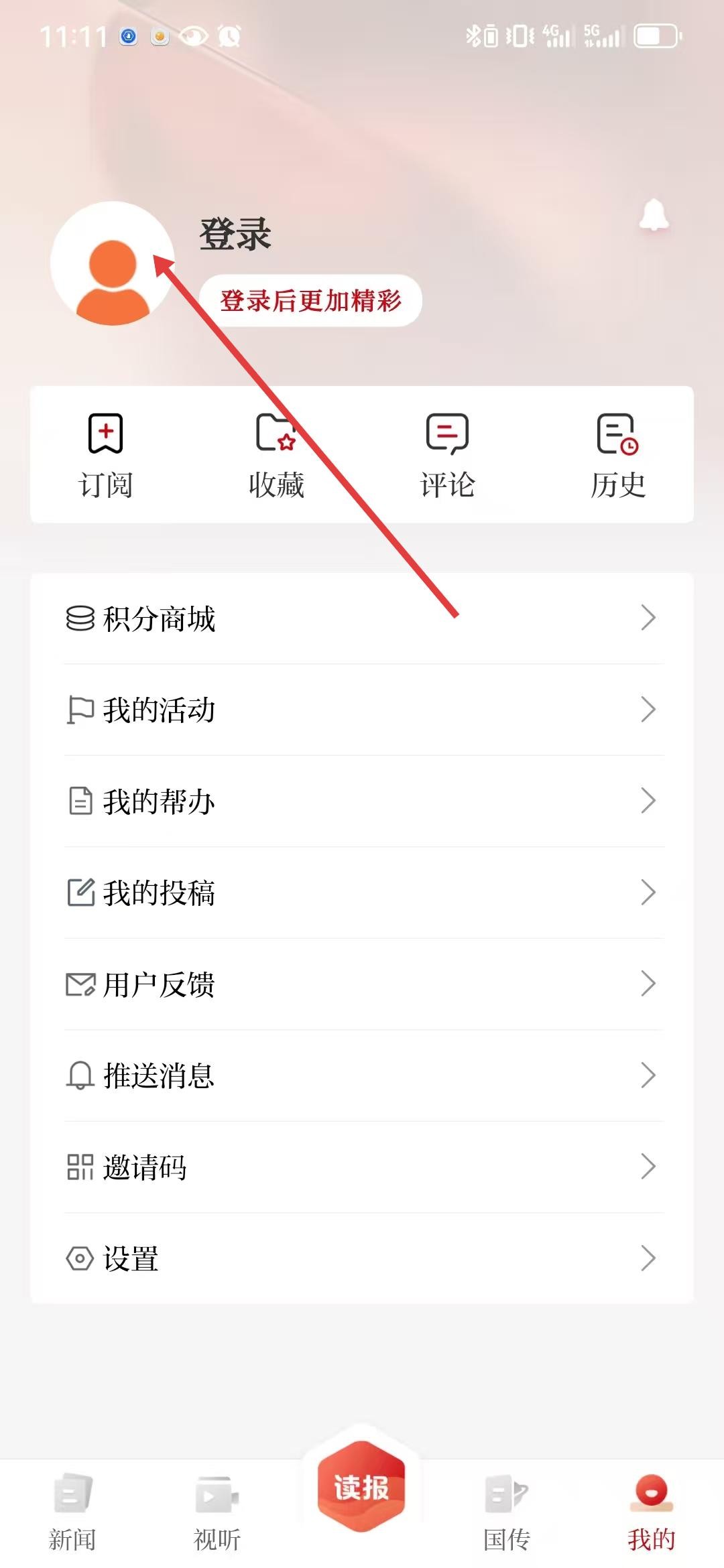 2、我的页面上方有登录入口,点击该入口可开启注册登录流程,登录后能体验订阅、收藏、参与活动等更多精彩功能,是注册使用客户端个性化服务的关键一步。