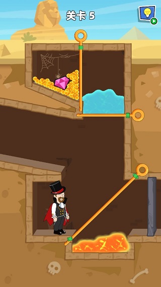 5、丰富多样机关谜题自由来发挥,动脑思考找到通关的办法,依次抽出棍子获得宝藏!