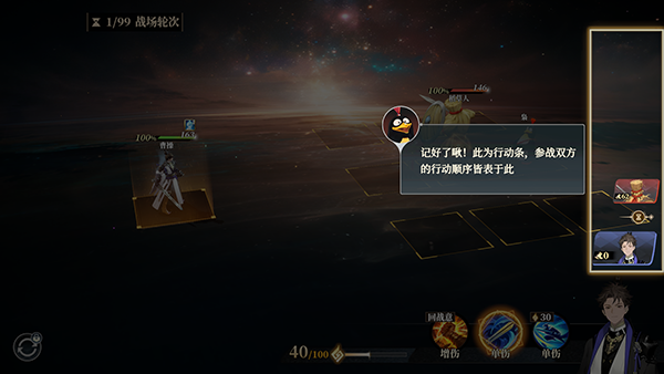 2、战斗界面右侧显示行动条,可以直观地查看各角色下一回合的行动顺序。