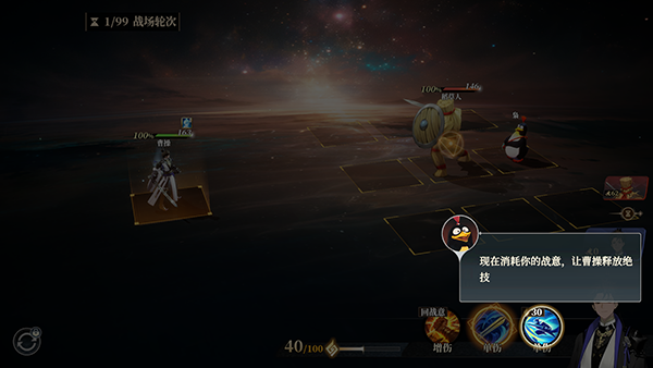 4、当战意值积累到一定程度时,玩家即可点击释放绝技,对敌方造成强力打击。