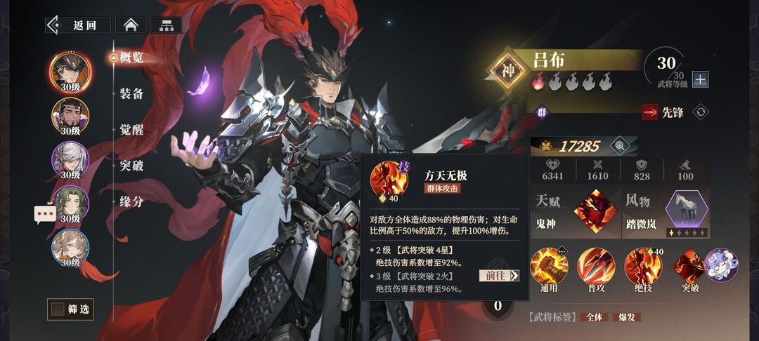 开局一个“方天无极”配合对50%生命以上目标增伤100%(自带sp破势御魂,你敢信?)+无双直接给敌人全部干成大残