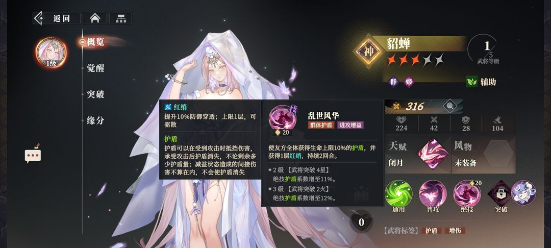 貂蝉大招使全体获得最大生命值百分比的护盾,以及10%的防御穿透效
