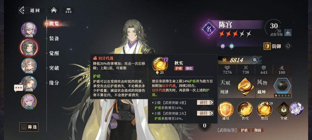核心角色为周瑜与陆逊。周瑜需要优先解锁至一阶突破,开启关键突破技,该技能可在结算阶段直接引爆敌方身上的灼烧效果,属于队伍的主要伤害引擎。随后培养陆逊至一阶突破,其效果是在每次行动后为敌方附加灼烧状态,持续强化火伤叠加效率。
